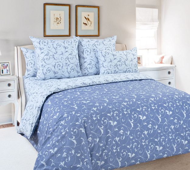 Почувствуйте прикосновение ангельской мягкости! Комплект "Габриэль" из перкаля ТМ Королевское Искушение — это ткань из 100% натурального хлопка с изысканным орнаментом в нежных голубых тонах. Каждый узор создаёт атмосферу спокойствия и гармонии, словно небо над вашей спальней.
