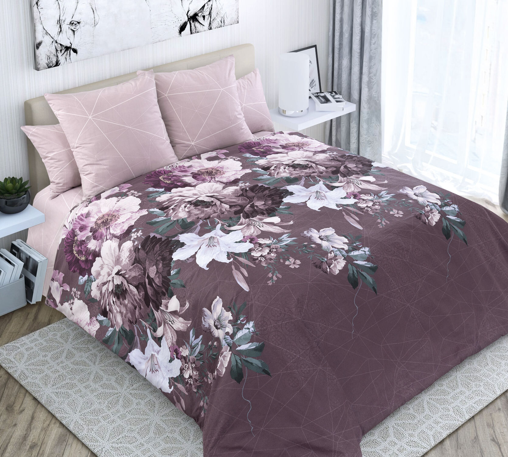 Комплект сшит из качественного перкаля (100% хлопок). Перкаль – плотная благородная ткань полотняного переплетения. Для изготовления используется тонкая нить - позволяет сделать ткань гораздо тоньше и плотнее. Ткань матовая, крахмальная, практически невесомая и при плотности 110 гр/м2 хорошо пропускает воздух. Перкаль – лучший выбор для тех, кто ищет качество.